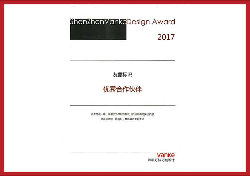 友昆標識-2017年萬科優(yōu)秀合作伙伴
