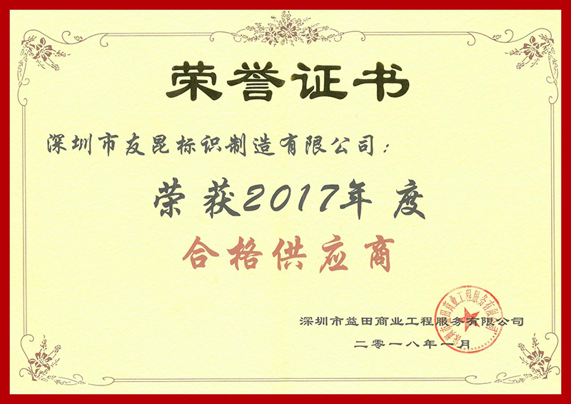 友昆標識-2017年萬科優(yōu)秀合作伙伴