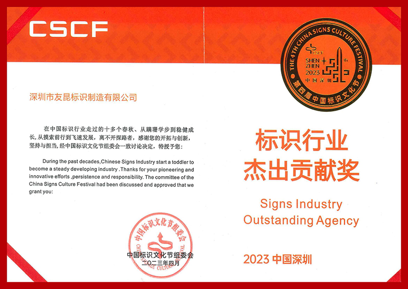 友昆標識-2023標識行業(yè)突出貢獻獎