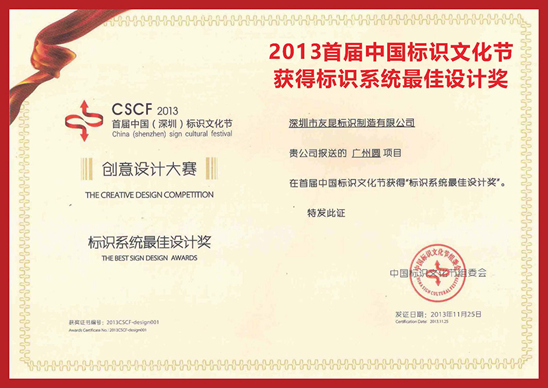 友昆標識-2013首屆中國標識文化節(jié)獲得標識系統(tǒng)最佳設計獎