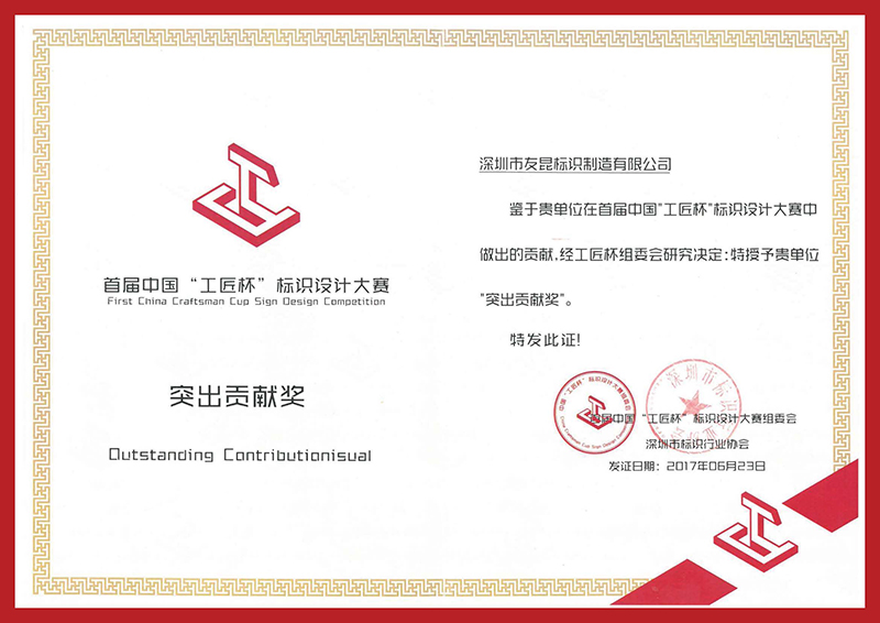 友昆標識-首屆中國工匠杯標識設計大賽突出貢獻獎
