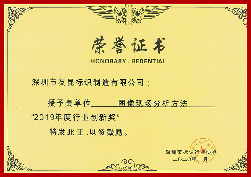 友昆標識-2019年度行業(yè)創(chuàng)新獎